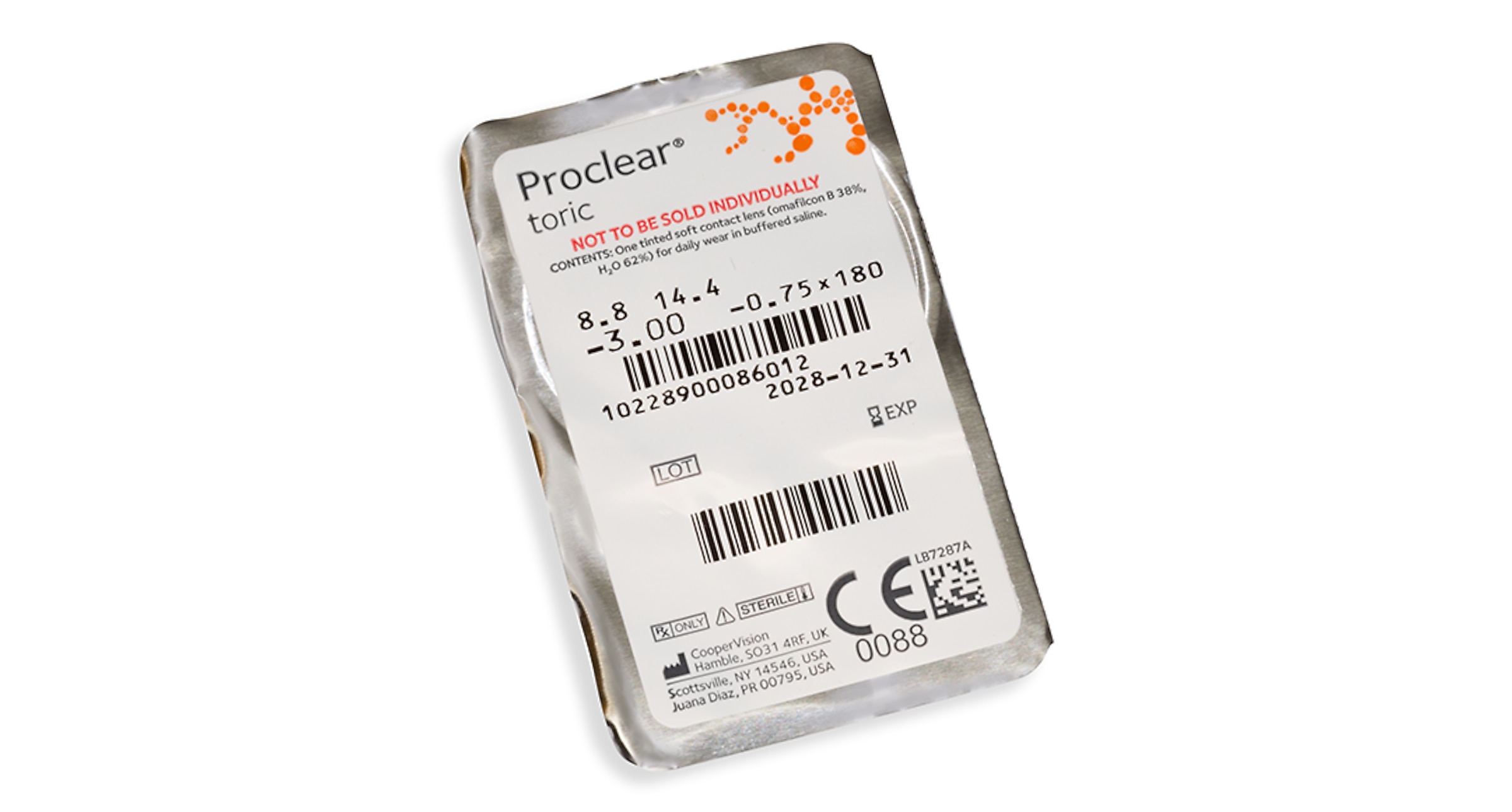 Proclear Toric contact lenses, manufactured by CooperVision, are monthly toric lenses recommended for those with astigmatism. These lenses can be worn for up to 30 consecutive days, provided they are cleaned and stored in solution each night.
